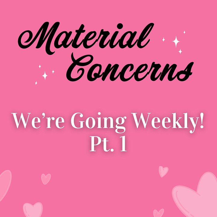 You’ve probably seen our announcement on Instagram or heard it on this week’s Material Concerns episode: Material Girls is now a weekly show! We’re so thrilled to be doubling production of our flagship podcast — offering you two regular format episodes and two Material Concerns episodes a month. But I’m not here to tell you what you already know. I, Coach, am taking over Gaby’s usual newsletter real estate to make an ask: Will you consider joining our Patreon?